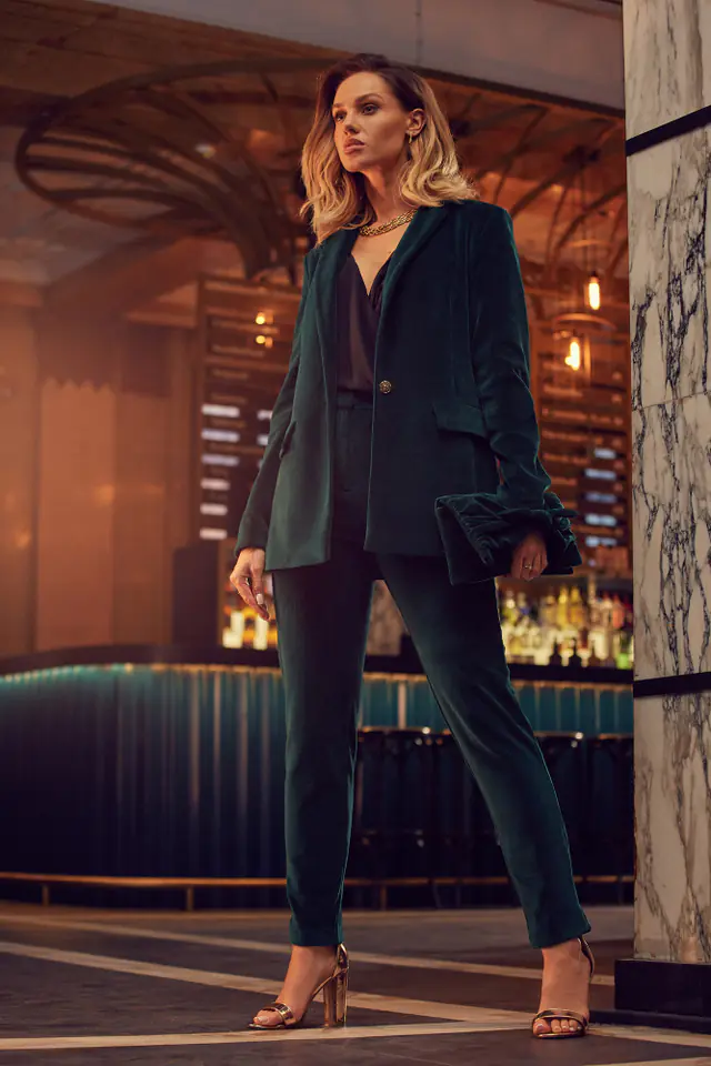 Eleganckie spodnie z miękkiego weluru o bawełnianej podstawie, wyjątkowe do stylizacji na co dzień i na specjalne okazje.