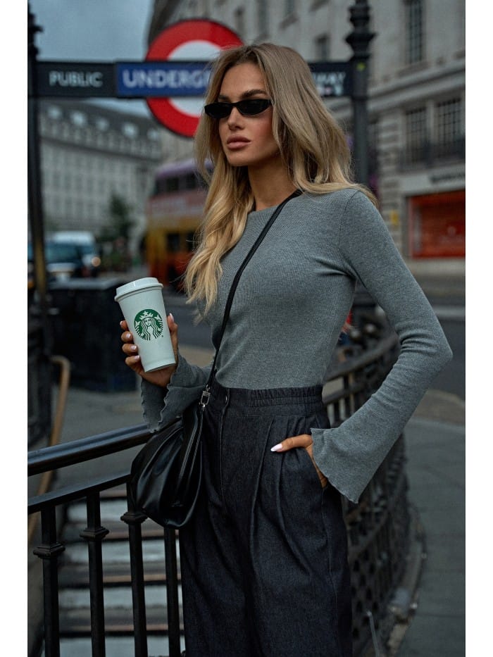 M806 Bluzka z długimi poszerzonymi rękawami - szary malanż kolor szary, rozmiar 2XL/3XL