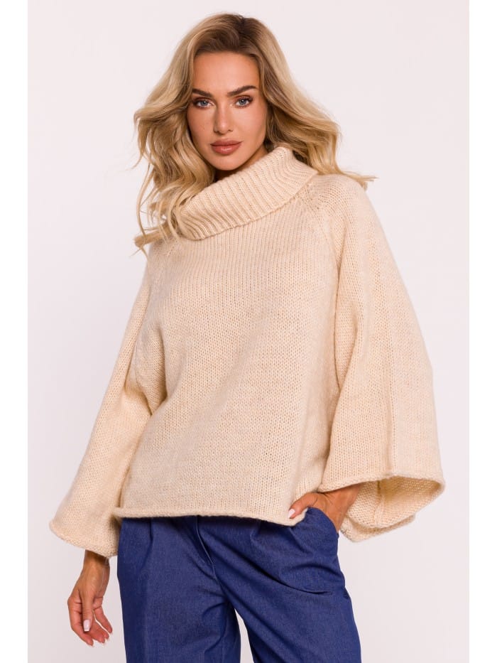 M822 Sweter z golfem i szerokimi rękawami - beżowy kolor beż, rozmiar uni
