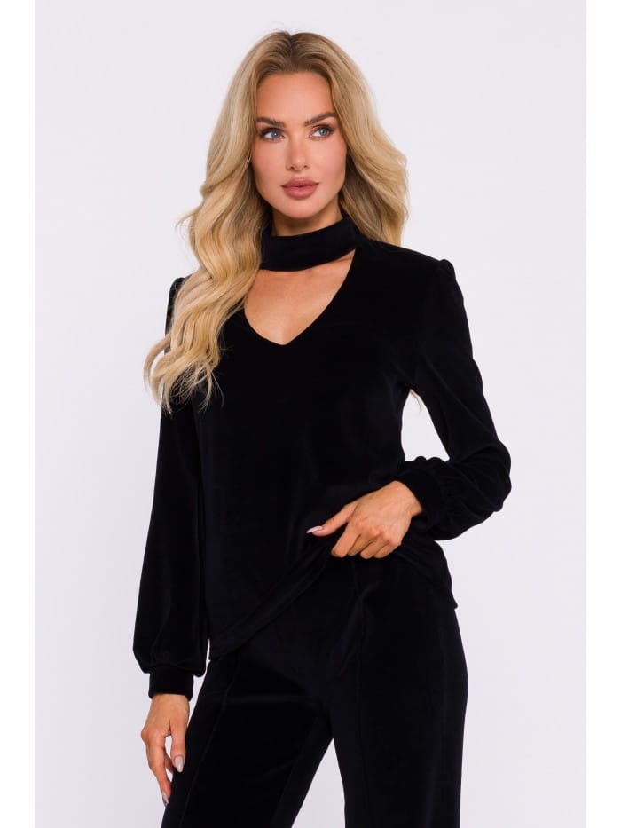M831 Welurowa bluzka z dekoltem typu halter neck - czarna kolor czarny, rozmiar M