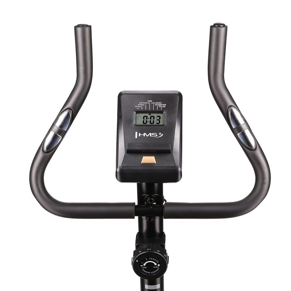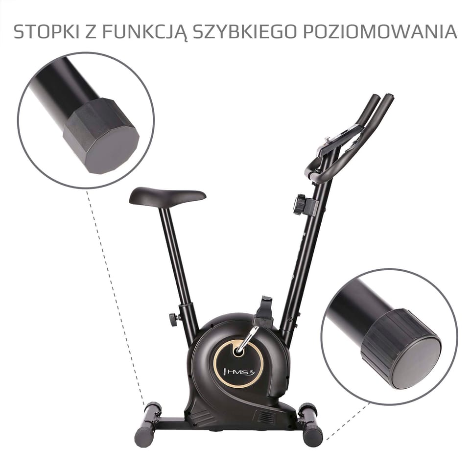 Stacjonarny rowerek magnetyczny M8750 HMS to sprzęt fitness, który idealnie sprawdzi się, podczas treningu w domu. Dzięki systemowi oporu magnetycznego ćwiczenia są ciche, a tym samym, nie przeszkadzają innym osobom w Twoim otoczeniu. Produkt posiada 8-stopniową regulację oporu, dzięki czemu możemy dostosować trening, do każdego poziomu zaawansowania. Regulacja odbywa się w prosty sposób, za pomocą pokrętła przymocowanego do kolumny kierownicy. Funkcjonalny oraz nowoczesny komputer, zlicza i prezentuje, wszystkie najważniejsze parametry treningu, między innymi: prędkość, czas, a także liczba spalonych kalorii. Regulowane siodełko, czy też wygodne pedały z regulowanymi paskami, są kolejnymi atutami, tej niezwykle udanej konstrukcji. Ponadto, ten model posiada uchwyt na urządzenie mobilne, co pozwoli uprzyjemnić trening, np. filmem oglądanym na tablecie. Jazda na rowerku stacjonarnym jest niczym innym jak treningiem cardio, czyli treningiem wytrzymałościowym, mającym na celu poprawę wydolności serca. Taki trening jest zalecany każdemu, bez względu na to, jaki prowadzi tryb życia, a także jaki typ sportu uprawia. Regularne ćwiczenia, na rowerku stacjonarnym, przede wszystkim pozwalają, na spalanie dużej liczby kalorii. Ćwiczenia, pomagają także w rozbudowie i ukształtowaniu, tkanki mięśniowej nóg. Rowerek M8750 HMS, to uniwersalny sprzęt, który dzięki niewielkim rozmiarom i wadze, znajdzie swoje miejsce w każdym domu. Specyfikacja: Typ: pionowy Rodzaj oporu: magnetyczny Kolor: czarno-złoty Waga koła zamachowego (kg): 3 Rodzaj regulacji oporu: manualny Ilość poziomów regulacji oporu: 8 Płaszczyzna regulacji siodełka: w pionie Od siodełka do pedałów (mm): 585 - 700 Od siodełka do podłogi (mm): 700 - 820 Sposób regulacji wysokości siodełka: skokowo (5 poziomów) Komputer (pomiar): czas: tak dystans: tak prędkość: tak kalorie: tak puls: tak Wyposażenie dodatkowe: stopki poziomujące: tak uchwyt na urządzenie mobilne: tak rolki transportowe: tak Wymiary rowerka (rozłożony): długość (mm): 880 szerokość (mm): 450 wysokość (mm): 1140 Komputer (funkcje): SCAN: tak Maksymalna waga użytkownika (kg): 110 Waga produktu (kg): 15 Uwagi: Nie przeznaczony do użytku komercyjnego Gwarancja 24 miesiące Importer: Abisal Sp. z o.o.| Polska | 41-807 Zabrze | ul. Pyskowicka 17 | e-mail: abisal@abisal.plAbisal Sp. z o.o. deklaruje, iż produkty sprzedawane przez firmę są bezpieczne i spełniają wymagania zawarte w Ustawie o ogólnym bezpieczeństwie produktów z dnia 12 grudnia 2003r. (Dz.U. z dnia 31 grudnia 2003r.)