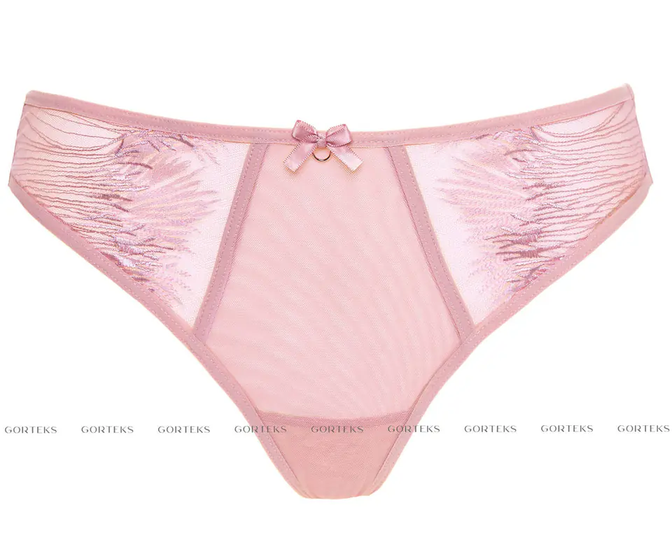 - Połyskujący haft we wzór przypominający pióra z przodu majtek,