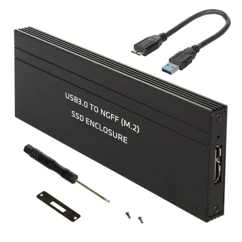 Wysokiej jakości aluminiowa obudowa dysków twardych SSD M.2. Kompatybilna z dyskami o wymiarach 2230 / 2240 / 2260 / 2280 mm. Zastosowanie technologii Plug & Play pozwala na natychmiastową pracę dysku po podłączeniu do portu USB, bez konieczności instalowania dodatkowych sterowników. Aluminiowa obudowa zapewnia doskonałe odprowadzanie ciepła, trwałość i bezpieczeństwo. Dzięki kompaktowej konstrukcji i niewielkiej wadze obudowa dysku twardego jest idealna do użytku w podróży. Dołączone do zestawu akcesoria montażowe pozwalają na szybkie i łatwe zamocowanie dysku w obudowie.