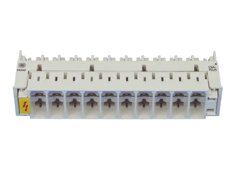Wyposazenie modułów rozłacznych w magazynki odgromników gazowych z ochroną termiczną pozwala ochronić systemy przed groźnymi dla sprzętu aktywnego skutkami zakłóceń (przepięć) z zewnątrz. W chwili wystapienia zakłócnia zniszczeniu ulega co najwyżej odgromnik, chroniąc inne elementy linii przed uszkodzeniem. Specjalne styki, umieszczone po obu stronach magazynka, zapewniaja automatyczne połączenie środkowej listwy z szyną telekomunikacyjną.