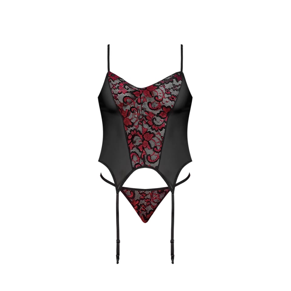 - Dopasowane koronkowe stringi w tym samym stylu, tworzące spojną całość z gorsetem.