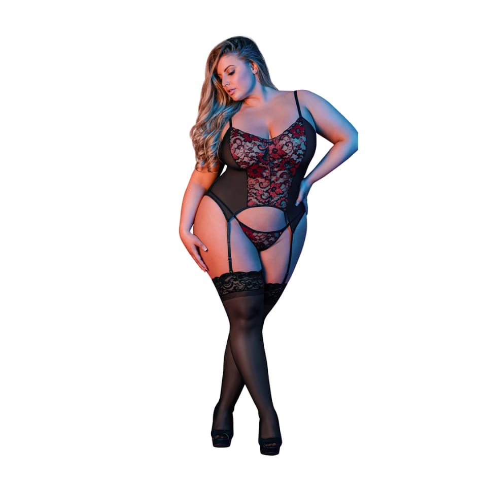 Kompletny zestaw bielizny Magic Silk Exposed Merry Widow Plus Size to doskonały wybor dla osob ceniących połączenie elegancji i komfortu. Model ten został wykonany z wysokogatunkowej, elastycznej koronki o efektownym wzorze, ktory podkreśla styl i dopasowuje się do sylwetki.