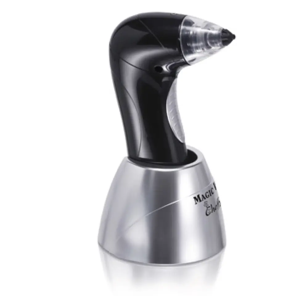 MagicVac Cheffy daje świeżość jedzenia 5 x dłużej. Pakowanie próżniowe wydłuża okres przydatności do spożycia większości świeżych produktów żywnościowych, redukując utlenianie i zapobiegając wzrostowi drobnoustrojów (bakterii i pleśni). Wiele świeżych produktów spożywczych zawiera wystarczającą ilość wilgoci, aby sprzyjać wzrostowi drobnoustrojów, które mogą rozmnażać się przy niewielkiej ilości powietrza. Aby zapobiec pogorszeniu jakości tych produktów, niezbędne jest przechowywanie ich w opakowaniach próżniowych. Usuwa maksymalną ilość powietrza/tlenu z opakowania próżniowego. Żywność w pojemnikach można: mrozić, przechowywać w lodówce, rozmrażać w mikrofalówce. Jedzenie jest świeże 5 razy dłużej. Żywność nie zmienia swojego smaku pomimo mrożenia. MagicVac Cheffy ma same zalety: Ręczna pompa z turbo silnikiem. Zgodna z dyrektywą ErP. Produkt wyprodukowany we Włoszech. Zasilanie: 12 V (zewnętrzny zasilacz) 13 litrów / minutę Poziom próżni pompy w barach - 0,8 Działanie: jeden cykl co 2 minuty Praktyczna i bardzo szybka Pompa do użytku profesjonalnego Może być stosowany z całą gamą akcesoriów MAGIC VAC® (z wyjątkiem worków i rolek). Certyfikowane urządzenie: Dzięki użyciu urządzenia MAGIC VAC wraz z oryginalnymi akcesoriami MAGIC VAC uzyskujemy najlepsze efekty pakowania próżniowego, usuwając maksymalną ilość powietrza/tlenu z pojemnika. Opakowania MAGIC VAC zapewniają najlepsze pakowanie próżniowe dzięki odpowiedniej grubości oraz specjalnemu „opatentowanemu” materiałowi. Szeroki wybór opatentowanych akcesoriów Dostępny jest szeroki wybór akcesoriów MAGIC VAC do kupienia takich jak: wielofunkcyjne pokrywki używane do odpowiednio odpornych pojemników (np. szklanych słoików, stalowych garnków lub patelni). Oferujemy również pojemniki, które przydają się do łatwego i szybkiego uporządkowania przechowywanej żywności w lodówce/zamrażarce lub spiżarni. Włoska technologia Urządzenia i akcesoria MAGIC VAC oparte są na opatentowanej włoskiej technologii. Wykonane są z materiałów i według metod rygorystycznie kontrolowanych podczas całego procesu produkcji. Jakość i wiarygodność zawsze wyróżniała produkty Flaem Nuova i sprawiła, że firma stała się jednym z liderów przemysłu na świecie. W zestawie otrzymujesz: Urządzenie Magic Vac Cheffy, stację ładującą, korek próżniowy.