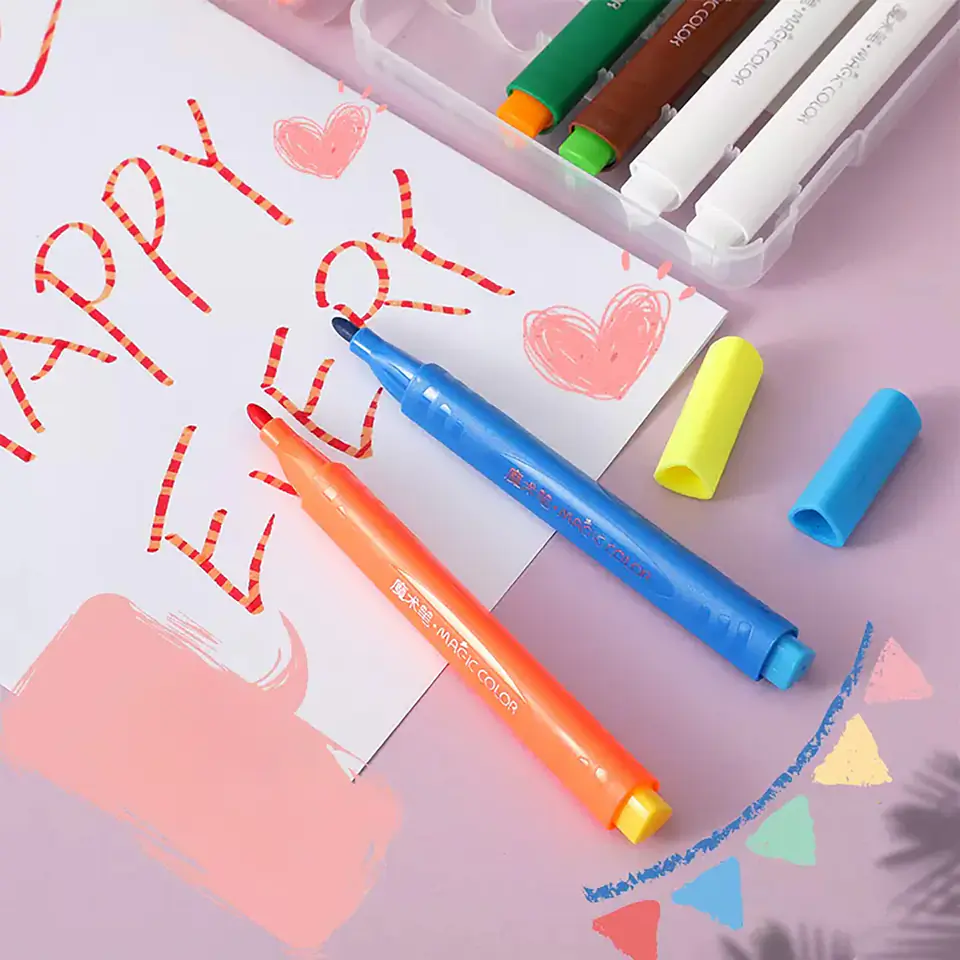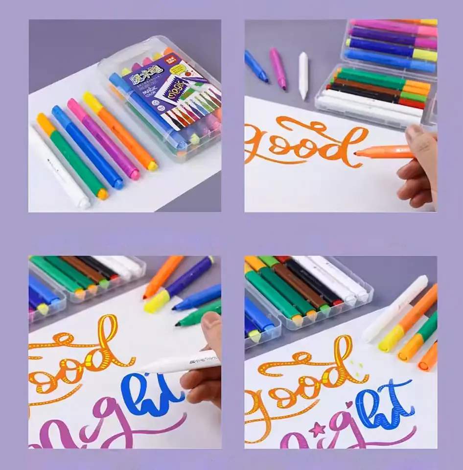 Te magiczne pisaki są niezwykle wszechstronne. Można ich używać na różnych powierzchniach, takich jak papier, karton, dzięki czemu istnieje nieskończona liczba możliwości tworzenia. Doskonale nadają się do kolorowania, rysowania, pisania lub dekorowania różnych projektów. Niech twoja wyobraźnia rozkwita!