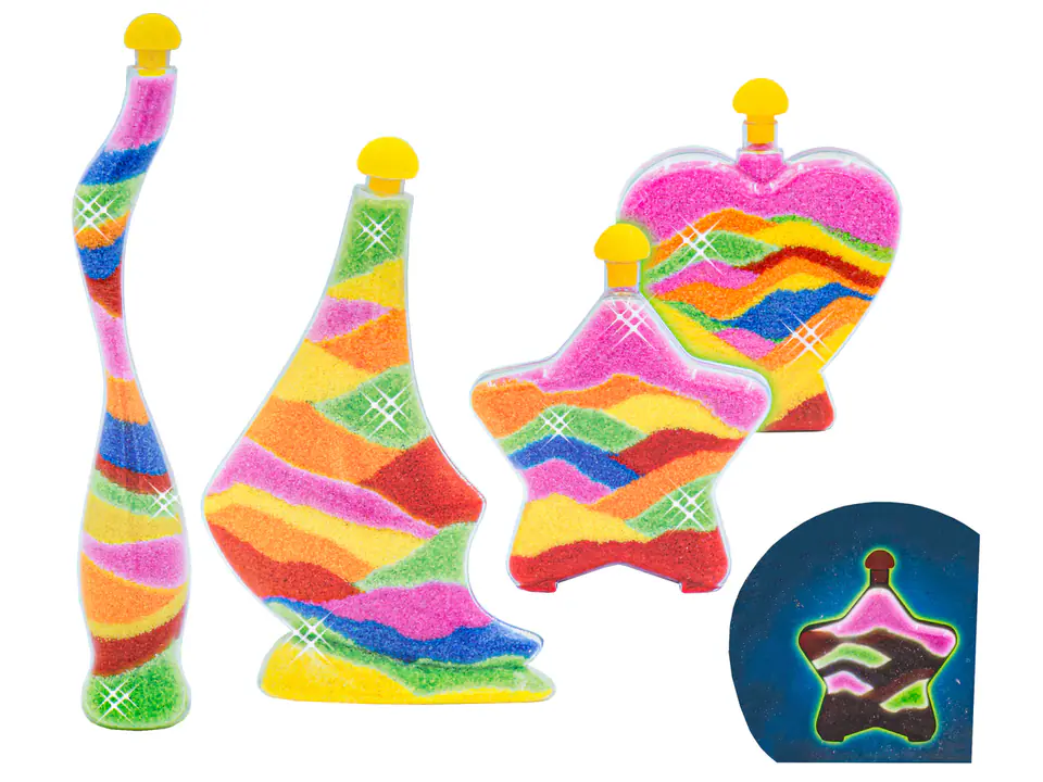 Kreatywny Zestaw MAGICZNY PIASEK DO WYPEŁNIANIA, PIASEK DO SYPANIA, SAND ART, Kolorowe Butelki - Zrób To Sam DIY