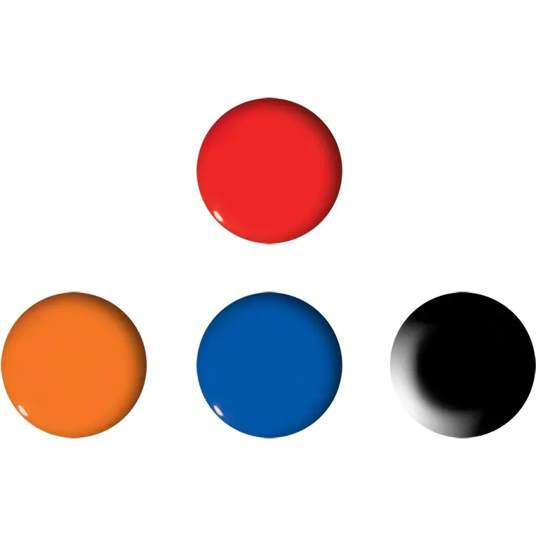 Zestaw zawiera 4 magnesy o średnicy 40 mm do tablic i innych powierzchni magnetycznych.