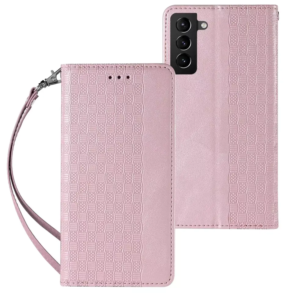 Magnet Strap Case etui do Samsung Galaxy S22+ S22 Plus) pokrowiec portfel + mini smycz zawieszka różow