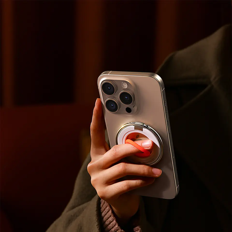 - - Współpracuje z telefonami iPhone 12, 13, 14, 15. Działa również ze smartfonami innych marek, jeżeli są wyposażone w metalowy pierścień,