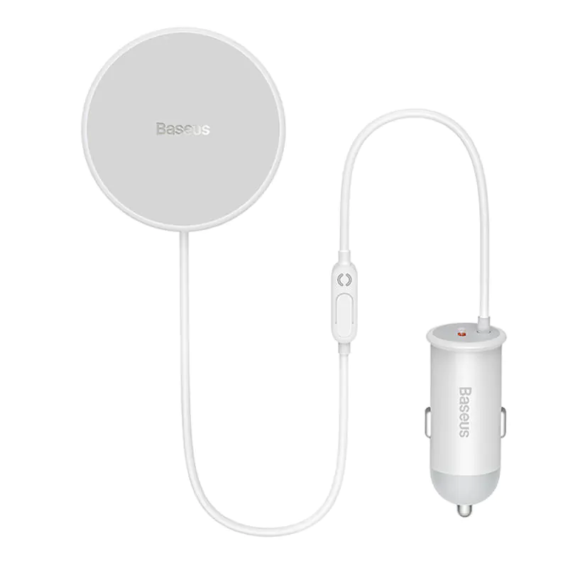 Producent Baseus Nazwa Baseus CW01 Magnetic Wireless Charging Car Mount 40W Model SUCX040102 Wejście DC 12V=24V Ładowanie bezprzewodowe 5W / 7.5W / 10W / 15W (maks.) Wyjście USB-C 5V=3A, 9V=2.77A, 12V=2.08A Całkowita moc 40W (15W+25W) Materiał ABS + PC + żel krzemionkowy Długość kabla 1.2 m Kolor Biały