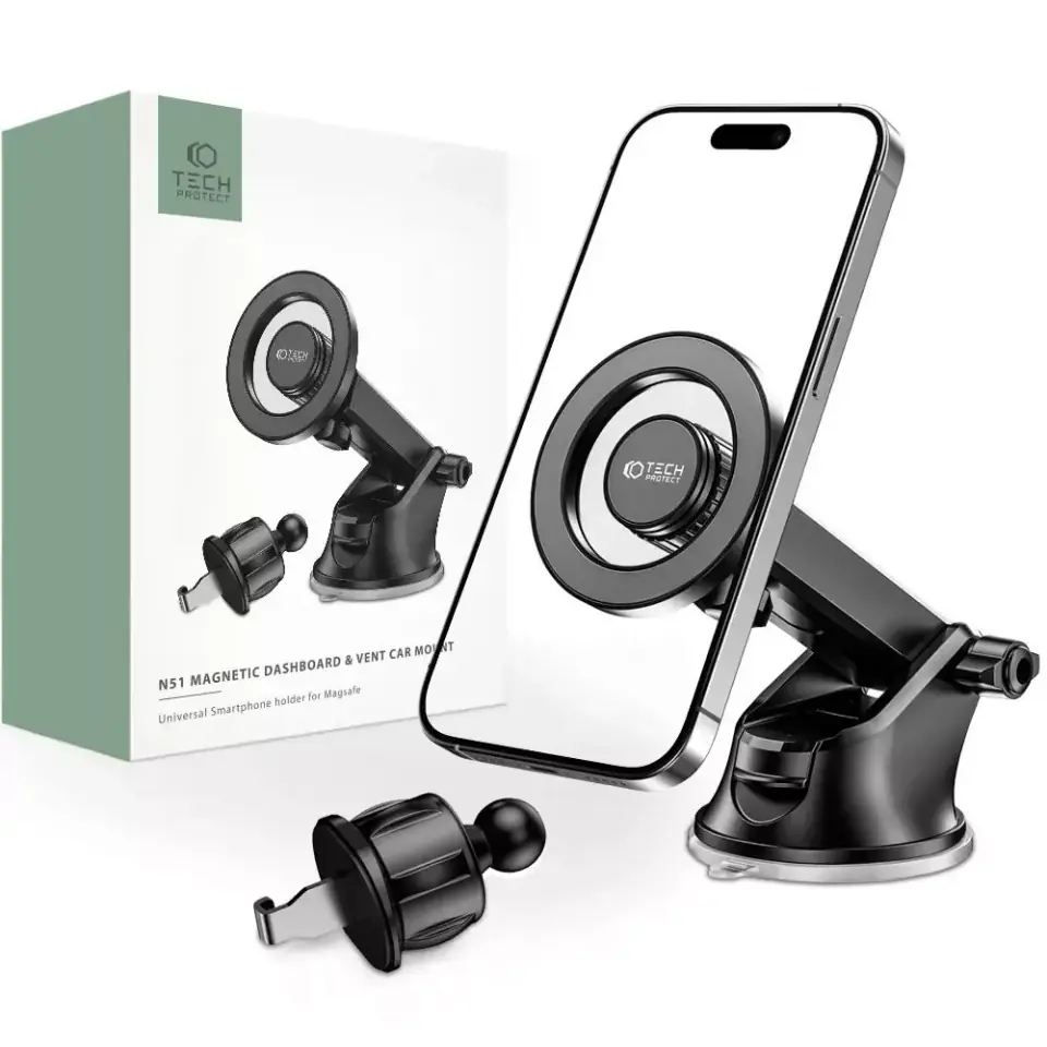 N51 to nowa propozycja magnetycznego uchwytu samochodowego od firmy Tech-Protect, stworzona z myślą o użytkownikach technologii Magsafe. Wbudowany silny magnes to gwarancja szybkiego i bezpiecznego mocowania. Obrotowa główka 360° daje dużą dowolność konfiguracji, a przy tym nie wpływa na stabilność konstrukcji.