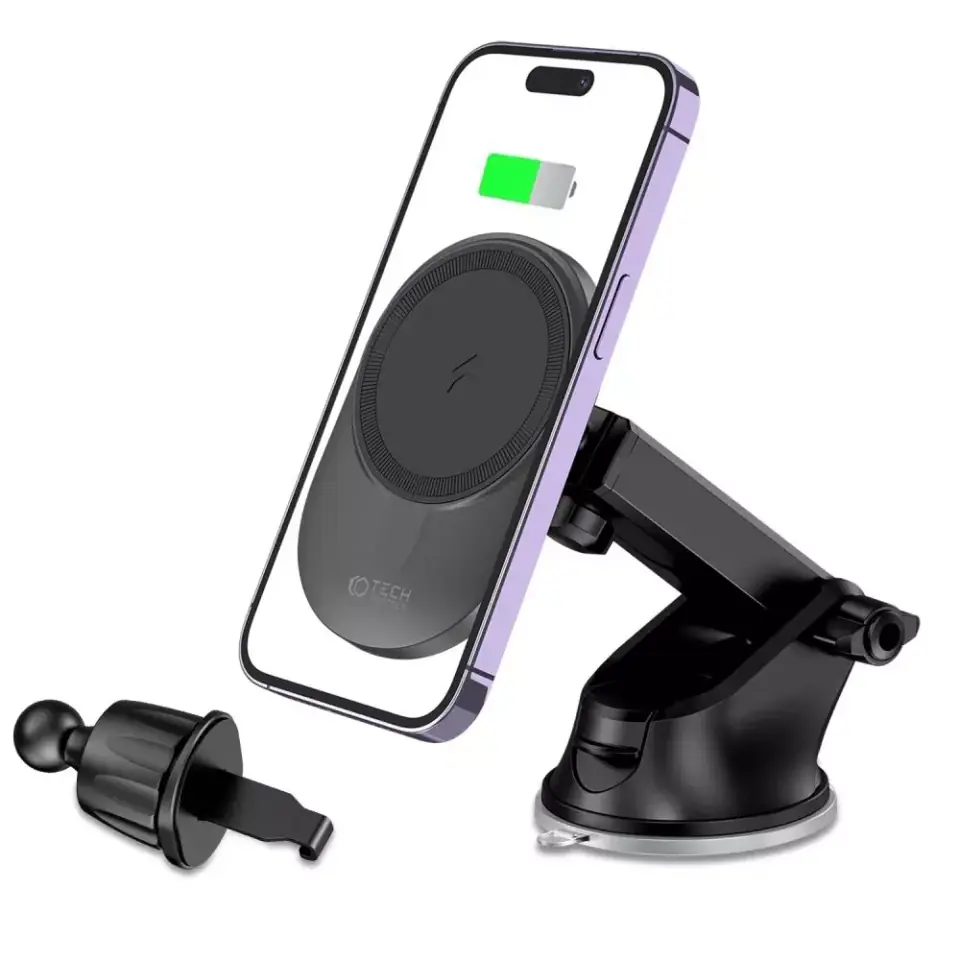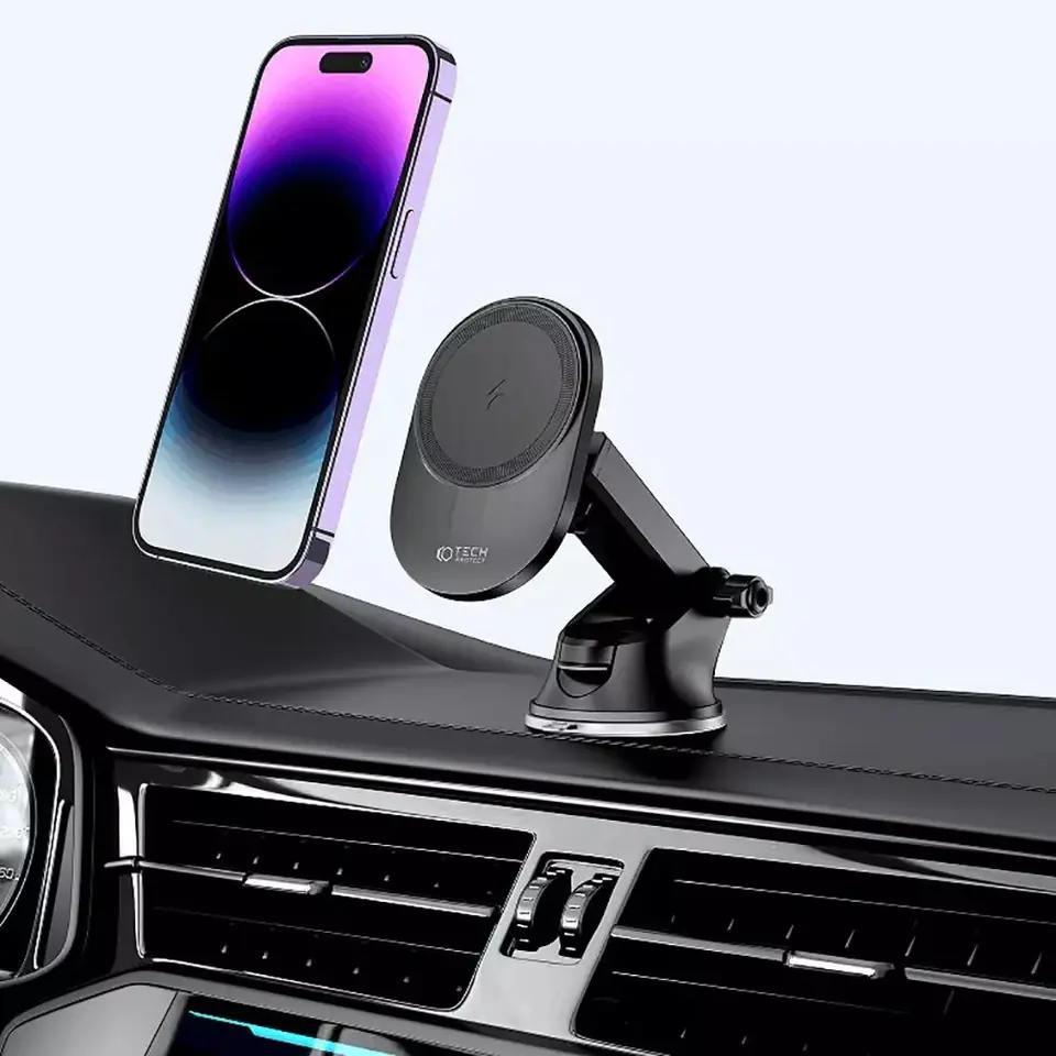 Tech-Protect MM15W-V1 czyli połączenie wygodnego uchwytu samochodowego oraz super szybkiej ładowarki bezprzewodowej obsługującej technologię MagSafe o maksymalnej mocy 15W.