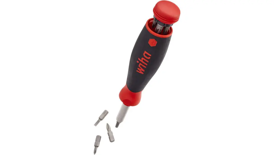 Bezpiecznie ukryty w rękojeści magazynek bitów zawiera osiem bitów standardowych 1/4" C 6,3, nadających się zarówno do prac ręcznych, jak i przy maszynach.