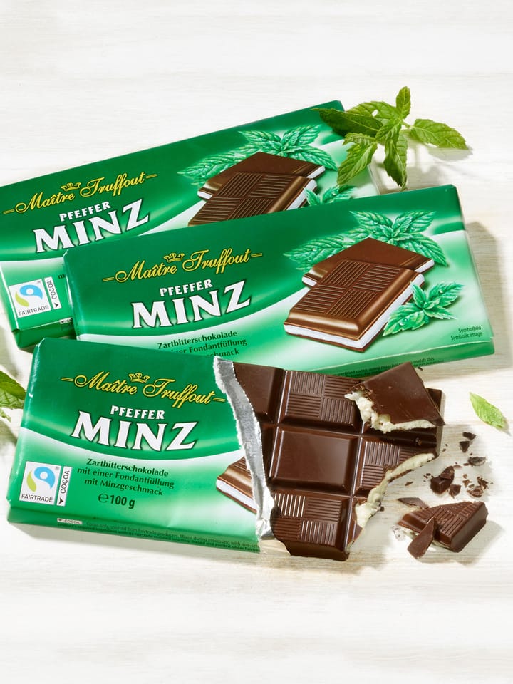 Składniki: Cukier, kremówka (cukier, syrop glukozowy, woda), miazga kakaowa, tłuszcze roślinne (palma, masło shea; w różnych proporcjach), masło kakaowe, substancja utrzymująca wilgoć: E420; niskotłuszczowe kakao w proszku, odtłuszczone MLEKO w proszku, słodka serwatka w proszku (z MLEKA), środek konserwujący: E202; Emulgatory: E322 (SOJA), E476; naturalny smak miętowy, aromatAlergeny: Może zawierać śladowe ilości glutenu, orzechów (CH: owoce o twardej skorupce), jajek i orzeszków ziemnych.