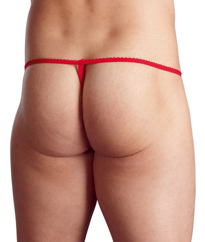 Zabawne, męskie stringi wykonane z metalicznie czerwonego materialu z białym futerkiem. Rewelacyjny pomysł na prezent.