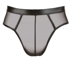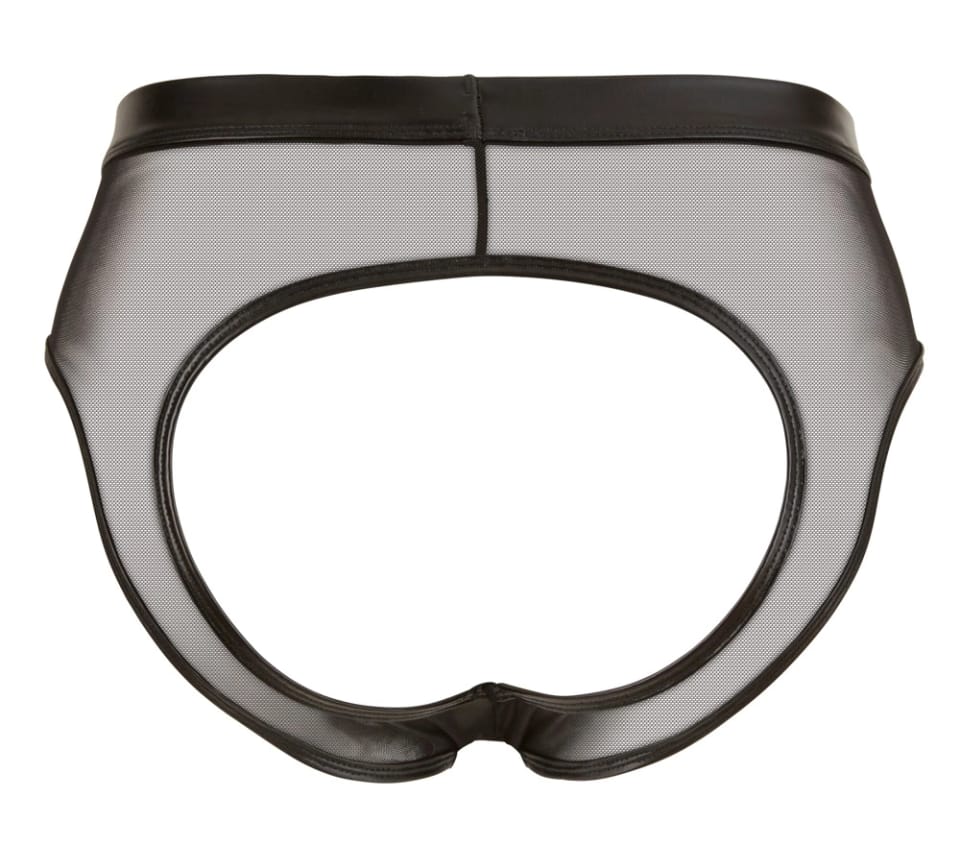 Męskie majtki wykonane z bardzo rozciągliwej siateczki w połączeniu z błyszczącą tkanina wetlook z oszałamiającym tyłem :) 90% poliamid, 10% elastan.