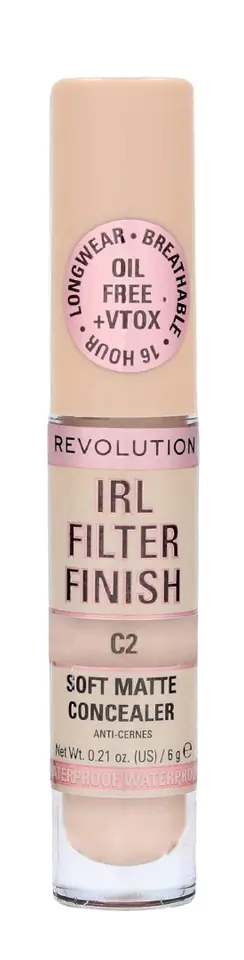 Korektor Makeup Revolution IRL Filter Finish Concealer zapewnia miękkie wykończenie i natychmiastowe krycie, aby zatuszować przebarwienia, cienie i drobne zmarszczki. Ten w pełni kryjący korektor ma oddychającą, miękką, matową formułę, jest bardzo wygodny w użyciu i pozostaje na swoim miejscu przez 16 godzin!