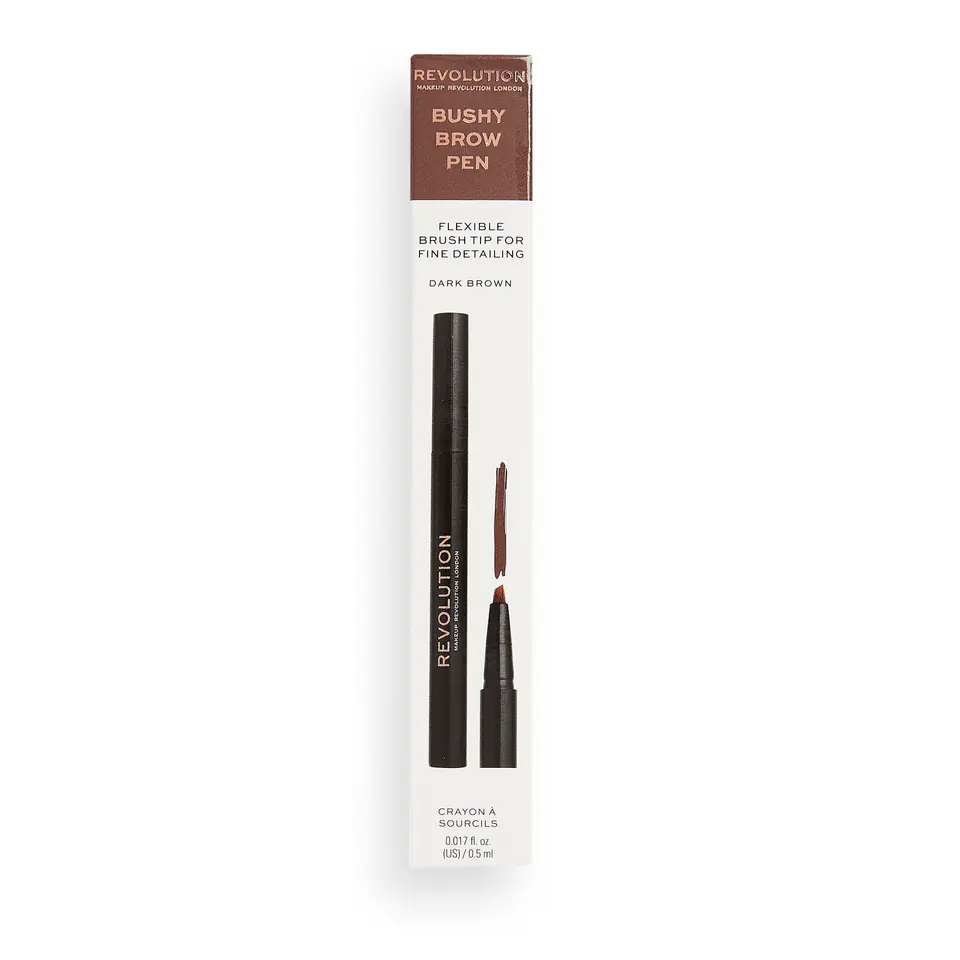 Pisak do brwi Dark Brown. Precyzyjna, elastyczna końcówka szczoteczki pozwala na dokładne odwzorowanie szczegółów, pomagając w rysowaniu pojedynczych włosków, wypełniając rzadkie obszary lub tworząc nowy kształt i wyrazistość. Łatwa aplikacja za jednym pociągnięciem zagiętej końcówki.