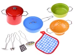 Fantastyczny Zestaw Garnków dla Małych Kucharzy! W erze popularności gotowania, gdzie programów kulinarnych nie brakuje, a dzieci uwielbiają bawić się w kucharzy, prezentujemy rewelacyjny zestaw metalowych garnków i przyborów kuchennych! Ten świetny zestaw nie tylko rozwija wyobraźnię i zdolności manualne, ale także sprawia ogromną radość podczas długich godzin kulinarnych zabaw.