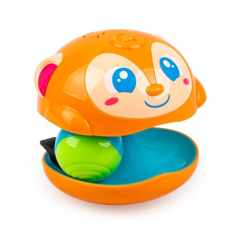 Małpka Kiwaczek Zabawny zwierzak chybocze się na swej małpiej podstawce, wydając przy tym dźwięk dzwoneczka! W środku zabawki znajduje się dwukolorowa piłeczka, która także wiruje dookoła, razem z małpką. Zakręć zabawką, słuchaj i obserwuj, aby odkrywać zależności przyczynowo - skutkowe, bawiąc się przy tym w najlepsze. Cechy produktu: - chybotliwa podstawa; - dzwoni przy obracaniu i potrząsaniu; - zabawka do kręcenia rączką; Wiek: 12m+