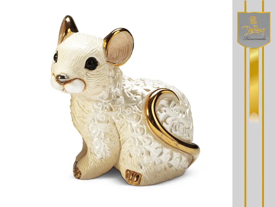 Bajeczna figurka przedstawiająca małego, białego szczurka o niezwykłym metalizowanym połysku. Ręczne wykonanie figurki nadaje jej niepowtarzalnego