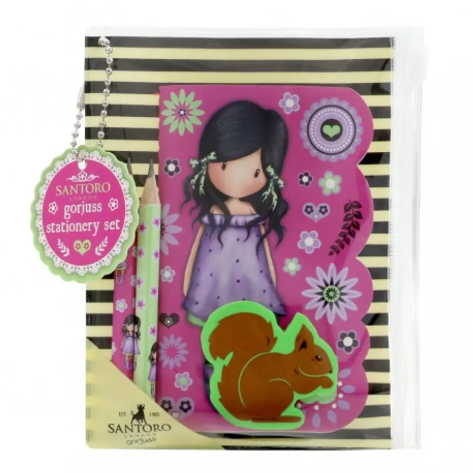 Mały Zestaw przyborów szkolnych - Gorjuss Fiesta - You Brought Me Love Firma Santoro London to producent niepowtarzalnych produktów, które zachwycą każdą dziewczynkę i niejednego dorosłego! Marka znana jest na całym świecie, a produkty sprzedawane są w najbardziej znanych i prestiżowych butikach. W najpopularniejszej z ich kolekcji – Gorjuss – znajdziecie przepiękne torebki, portfele oraz portmonetki, oryginalne artykuły papiernicze (notatniki, pamiętniki, długopisy, ołówki) oraz niepowtarzalne lusterka, balsamy do ust, szkatułki i wiele więcej! Kolekcja Gorjuss to wspaniały pomysł na wyjątkowy prezent z każdej okazji! Charakterystyka Zestaw przyborów szkolnych w saszetce zamykanej na specjalny suwak. Wewnątrz znajduje się notes z gładkimi, różowymi kartkami, 2 mini ołówki oraz gumka w kształcie wiewiórki. Przydatne w szkole, biurze i w podróży. Wymiary: 13.8 x 10.8 x 1.2cm 921GJ02