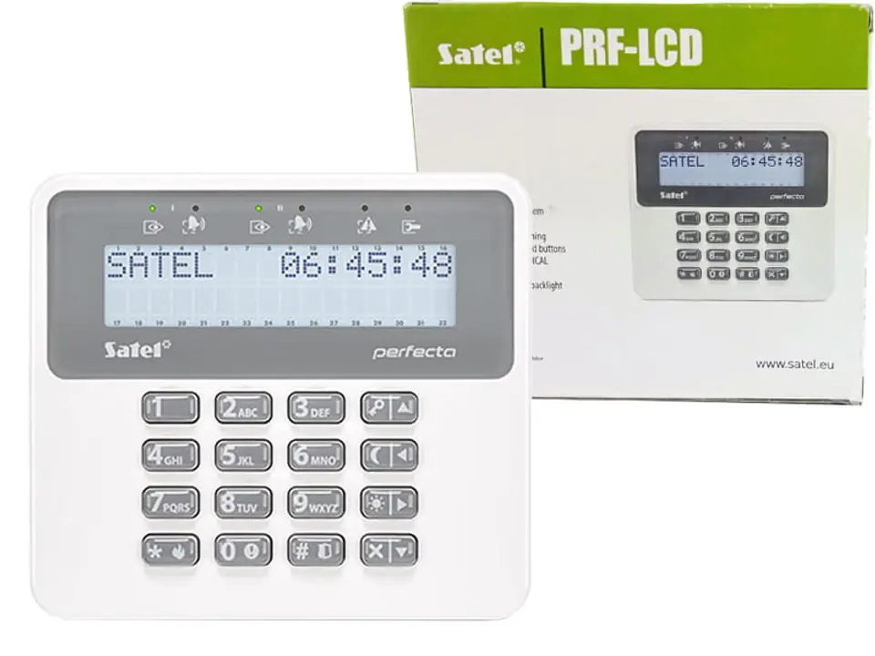 Manipulator Satel PRF-LCD do obsługi centralek serii PERFECTA i PERFECTA-T. Urządzenie spełnia wymogi bezpieczeństwa Grade 2 określone normą EN50131.
