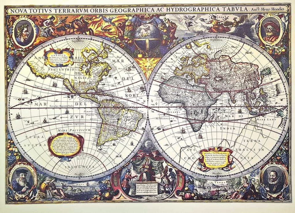 Mapa świata 1630r. - J.Hondius reprint - M1630 - Prezent dla historyka