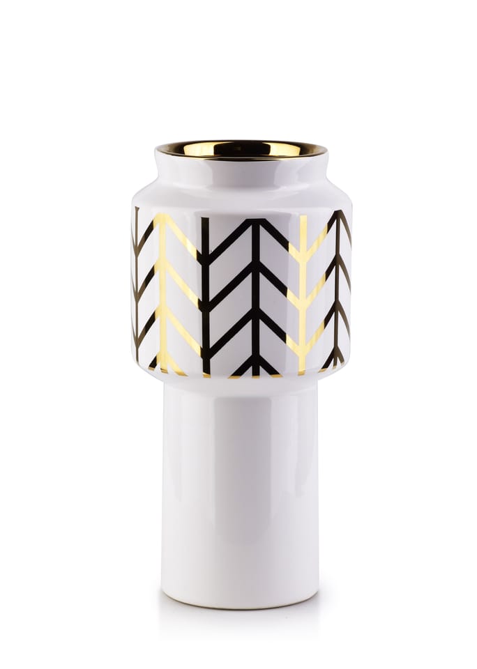 Cearmiczny wazon zoto-biały z kolekcji MARITTA marki MONDEX.wysokość: 25cmśrednica: 12cmDuży, mały, fantazyjny . wazony ceramiczne, które zachwycają kształtemWazony ceramiczne to często dekoracje same w sobie. Ceramika jest bardzo wdzięcznym, lubianym przez projektantów tworzywem, ponieważ daje możliwość wyczarowania wazonów o nawet najbardziej fantazyjnych kształtach. Zwróć uwagę na przykład na dostępną w naszym sklepie kolekcję wazonów marki Mondex . znajdziesz tu wyjątkowe wazony między innymi w kształcie kaktusa, dzbanka, butelki, o nietypowej fakturze kryształu i o modnych strukturalnych wzorach. To idealny wybór przede wszystkim do nowoczesnych wnętrz. Jednak nie tylko . tego typu wazony pięknie będą się prezentować między innymi w przestrzeniach zaaranżowanych w minimalistycznym stylu skandynawskim i jako kontrast dla surowych loftowych wnętrz. Dostępny w naszym sklepie szeroki wybór wazonów sprawi, że bez problemu dopasujesz idealny wazon do wnętrza w każdym stylu: klasycznym lub nowoczesnym. Wazon z kwiatami to dekoracja ponadczasowa . wybierz swój ulubiony, a zostanie w Twoim domu na długie lata.