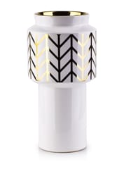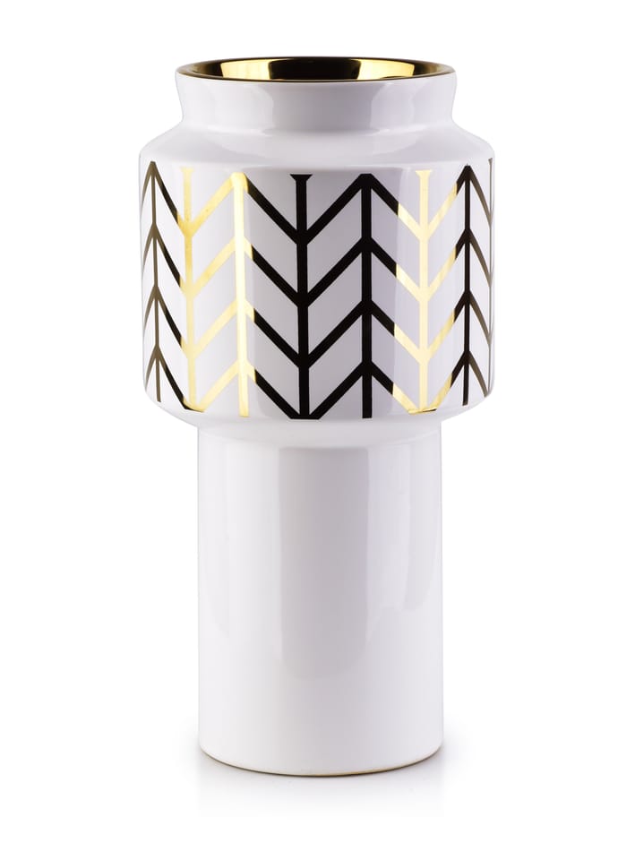 Ceramiczny wazon złoto-biały z kolekcji MARITTA marki MONDEX.wysokość: 30cmśrednica: 15cmDuży, mały, fantazyjny . wazony ceramiczne, które zachwycają kształtemWazony ceramiczne to często dekoracje same w sobie. Ceramika jest bardzo wdzięcznym, lubianym przez projektantów tworzywem, ponieważ daje możliwość wyczarowania wazonów o nawet najbardziej fantazyjnych kształtach. Zwróć uwagę na przykład na dostępną w naszym sklepie kolekcję wazonów marki Mondex . znajdziesz tu wyjątkowe wazony między innymi w kształcie kaktusa, dzbanka, butelki, o nietypowej fakturze kryształu i o modnych strukturalnych wzorach. To idealny wybór przede wszystkim do nowoczesnych wnętrz. Jednak nie tylko . tego typu wazony pięknie będą się prezentować między innymi w przestrzeniach zaaranżowanych w minimalistycznym stylu skandynawskim i jako kontrast dla surowych loftowych wnętrz. Dostępny w naszym sklepie szeroki wybór wazonów sprawi, że bez problemu dopasujesz idealny wazon do wnętrza w każdym stylu: klasycznym lub nowoczesnym. Wazon z kwiatami to dekoracja ponadczasowa . wybierz swój ulubiony, a zostanie w Twoim domu na długie lata.