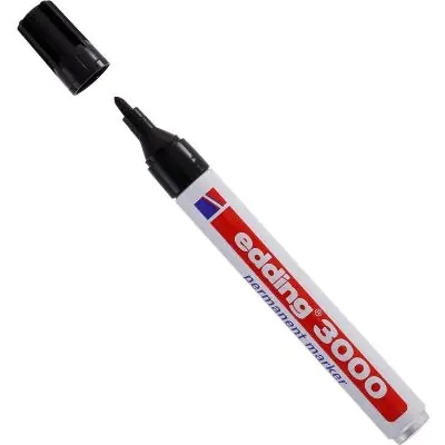 Oryginalny marker permanentny niemieckiej marki Edding. Końcówka okrągła, wymienna. Szybkoschnący, permanentny i bezzapachowy tusz bez dodatku toluenu/ksylenu, nieścieralny i wodoodporny, odporny na światło. Świetnie nadaje się do opisywania, znaczenia na wszystkich materiałach, w tym szkle, metalach oraz tworzywie sztucznym.