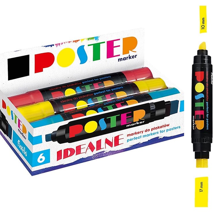 * do pisania i rysowania* idealny do plakatów* szybkoschnący, wodoodporny* podwójna końcówka 10 mm/17 mm* może być stosowany na gładkiej powierzchni* kolory: czarny (symbol: 160-2240), czerwony (symbol: 160-2242), niebieski (symbol: 160-2241), różowy (symbol: 160-2245), zielony (symbol: 160-2243), żółty (symbol: 160-2244)
