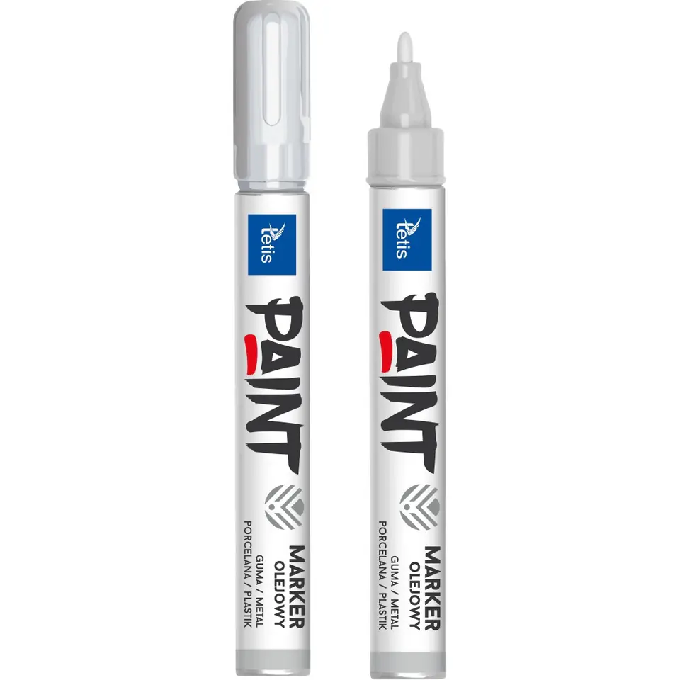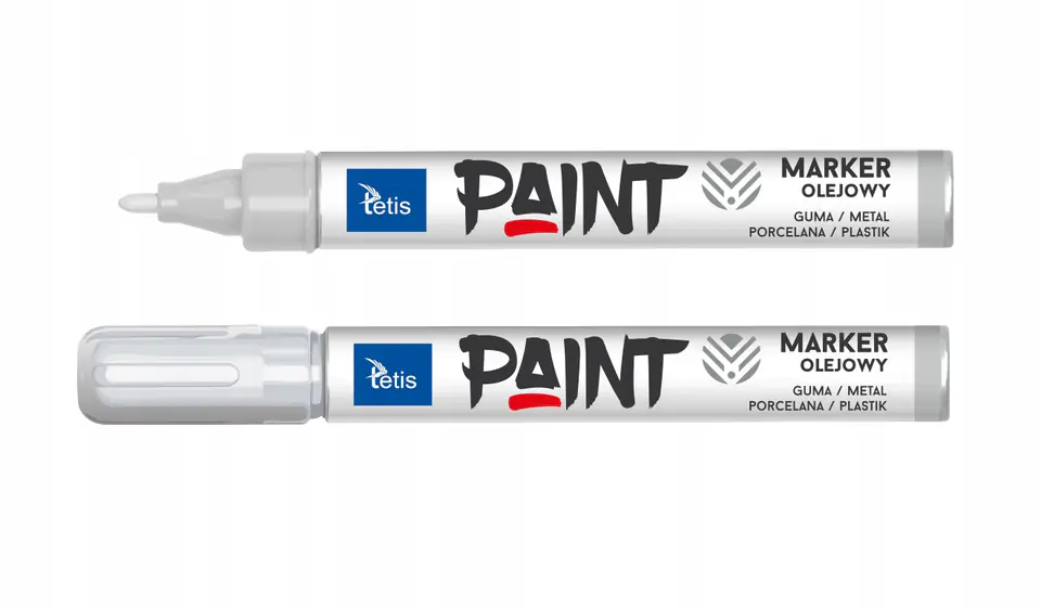 Marker olejowy marki Tetis idealnie sprawdzi sie do gumy, metalu, porcelany i plastiku. Niezwykle trwaly, oporny na warunki atmosferyczne takie jak woda czy promienie UV.