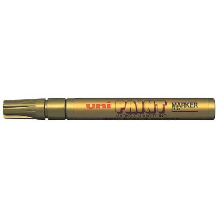 Profesjonalny marker olejowy UNI PX-20 do znakowania wszystkich powierzchni: szorstkich, gladkich i tlustych (metal, szklo, kamien, plastik, styropian, drewno). Na wiekszości materialów schnie w ciągu 40-50 sekund.