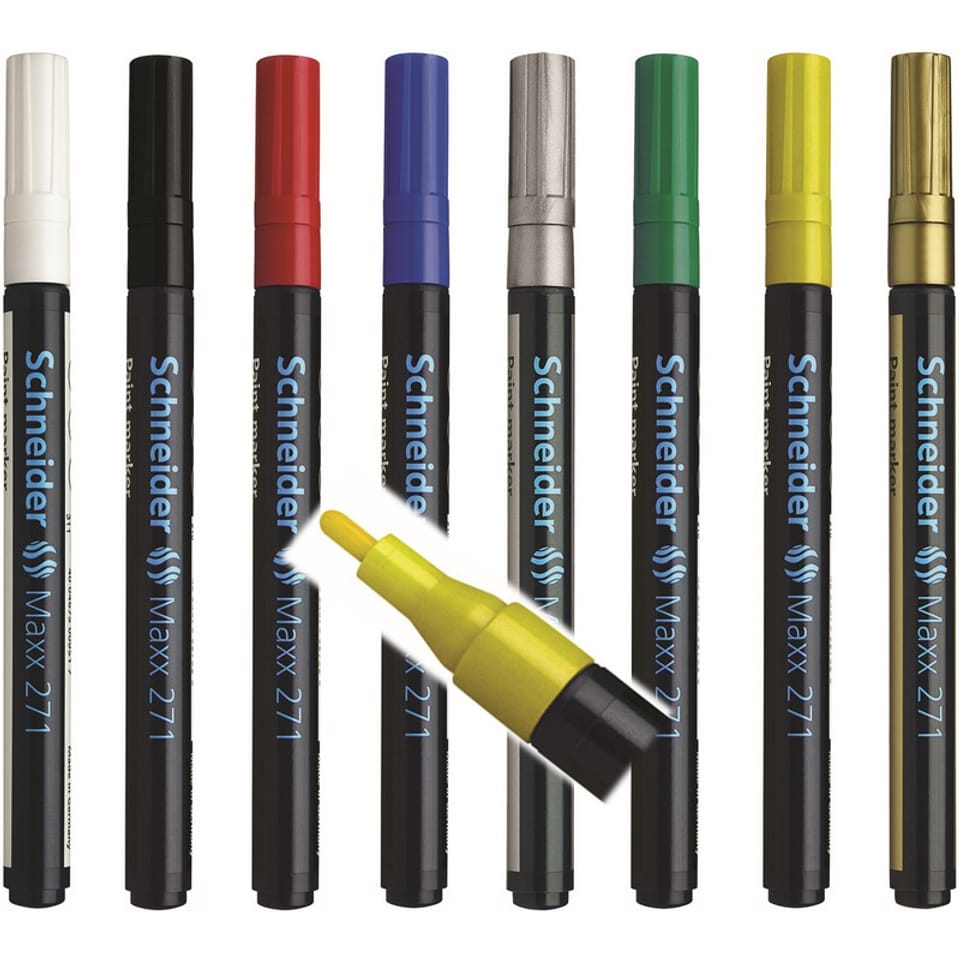 * jednostka sprzedaży: 1 szt. * do zaznaczania, dekorowania oraz zdobienia * wymienna, okrągła, średniej grubości końcówka * możliwość pisania zarówno po chropowatej jak i gładkiej powierzchni, np. kartonie, papierze, skórze, gumie, drewnie, plastiku, szkle, metalu itd. * bardzo silne przyleganie, odporne na procesy technologiczne (ścieranie, mycie, warunki atmosferyczne, wysoką temperaturę do 300°C) * tusz nietoksyczny - bez dodatku ksylenu i toluenu * światło- i wodoodporny, w intensywnych kolorach * wypływ farby kontrolowany specjalnym zaworem * każdy marker indywidualnie foliowany * kod kreskowy umieszczony na każdym produkcie * grubość linii pisania: 1-2 mm