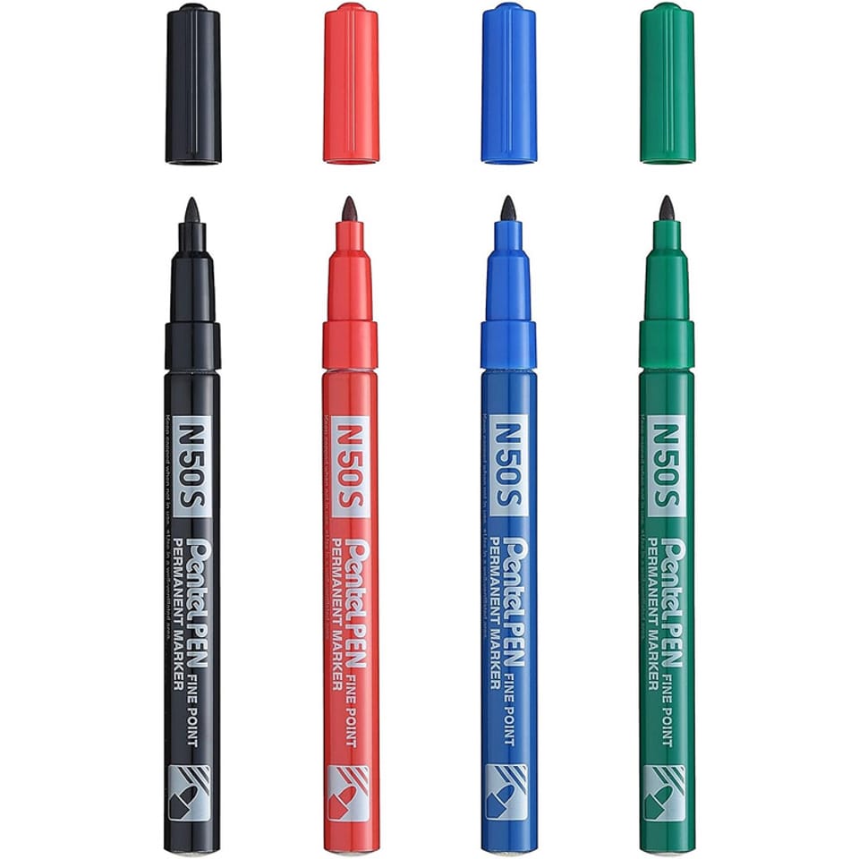 * markery permanentne PENTEL * wyjątkowo cienka, okrągła końcówka * pozwala na pisanie każdych szczegółów, znaków oraz symboli * idealne do prac remontowych, magazynowych, opisywania kartonów, tworzenia plakatów, banerów * odpowiednie na większość podłoży tj. karton, metal, drewno, plastik czy szkło * wytrzymała końcówka, odporna na dociskanie do powierzchni * długość końcówki: 5 mm * grubość końcówki: 3,18 mm * grubość linii pisania: 1 mm * rodzaj tuszu: permanentny * kolory tuszu: czarny, czerwony, niebieski, zielony * zawartość tuszu: 1,75 ml * średnica obudowy w najszerszym punkcie: 11 mm * waga produktu: 8,3 g * producent markerów posiada certyfikat ISO 9001:2008 (ISO 9001:2008 - SYSTEM ZARZĄDZANIA JAKOŚCIĄ - WYMAGANIA, jest czwartą edycją normy opublikowanej po raz pierwszy w 1987 roku - stała się światowym wzorcem dla zapewnienia zdolności organizacji do spełnienia wymagań jakości i zwiększenia satysfakcji klienta w relacji klient-dostawca) * symbol produktu: N50S * końcówka pisząca wykonana z filcu (FILC - wyrób włókienniczy otrzymywany przez spilśnianie tkanin, zwłaszcza wełnianych - rozróżnia się dwa rodzaje filców: filce bite, uzyskiwane przez bezpośrednie folowanie włókien, oraz filce tkane, uzyskiwane przez folowanie powierzchni tkanin) * nasadka wykonana z materiału POM (POM, czyli polioksymetylen, znany jest również w handlu jako poliacetal lub poliformaldehyd - jest to polimer termoplastyczny łączący wysoką wytrzymałość i sztywność - charakteryzuje się małą absorpcją wody i bardzo dużą stabilnością wymiarową) * obudowa wykonana z aluminium * jednostka sprzedaży 1 sztuka * firma PENTEL powstała pod koniec lat czterdziestych dwudziestego wieku w Japonii - jej nazwa jest ściśle związana z branżą papierniczą i biurową, w której działa i funkcjonuje od wielu lat - połączenie słów PEN (z ang. pióro) i TEL (z ang. opowiadać) określa genezę i cel powołania marki do życia - tworzenie z pasją artykułów do pisania, rysowania i malowania, to to do czego została powołana firma PENTEL