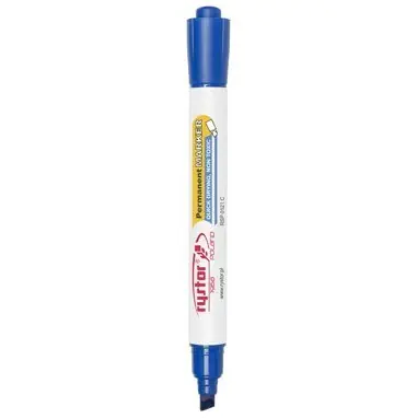 Marker RYSTOR wyposazony w ścietą fibrową koncówke piszącą. Doskonaly do pisania po prawie kazdej powierzchni: papierze, szkle, metalu i plastiku.