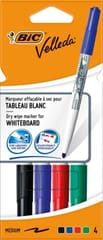 Marker suchościeralny BIC Velleda , 4 sztuki w kolorach: czarny, niebieski, czerwony, zielony.- Marker nie rozmazuje się