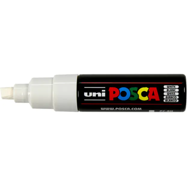 Marker Posca PC-8K z szeroką ścietą koncówką umozliwia krycie duzych powierzchni i rysowanie czystych linii, a to wszystko w szerokiej gamie kolorów!
