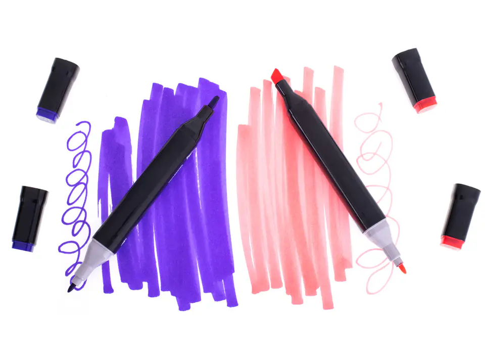 Każdy mazak posiada 2 końcówki, jedną cienką idealną do konturowania lub pisania, drugą grubszą, która doskonale nada się do kolorowania lub zakreślania istotnych informacji.