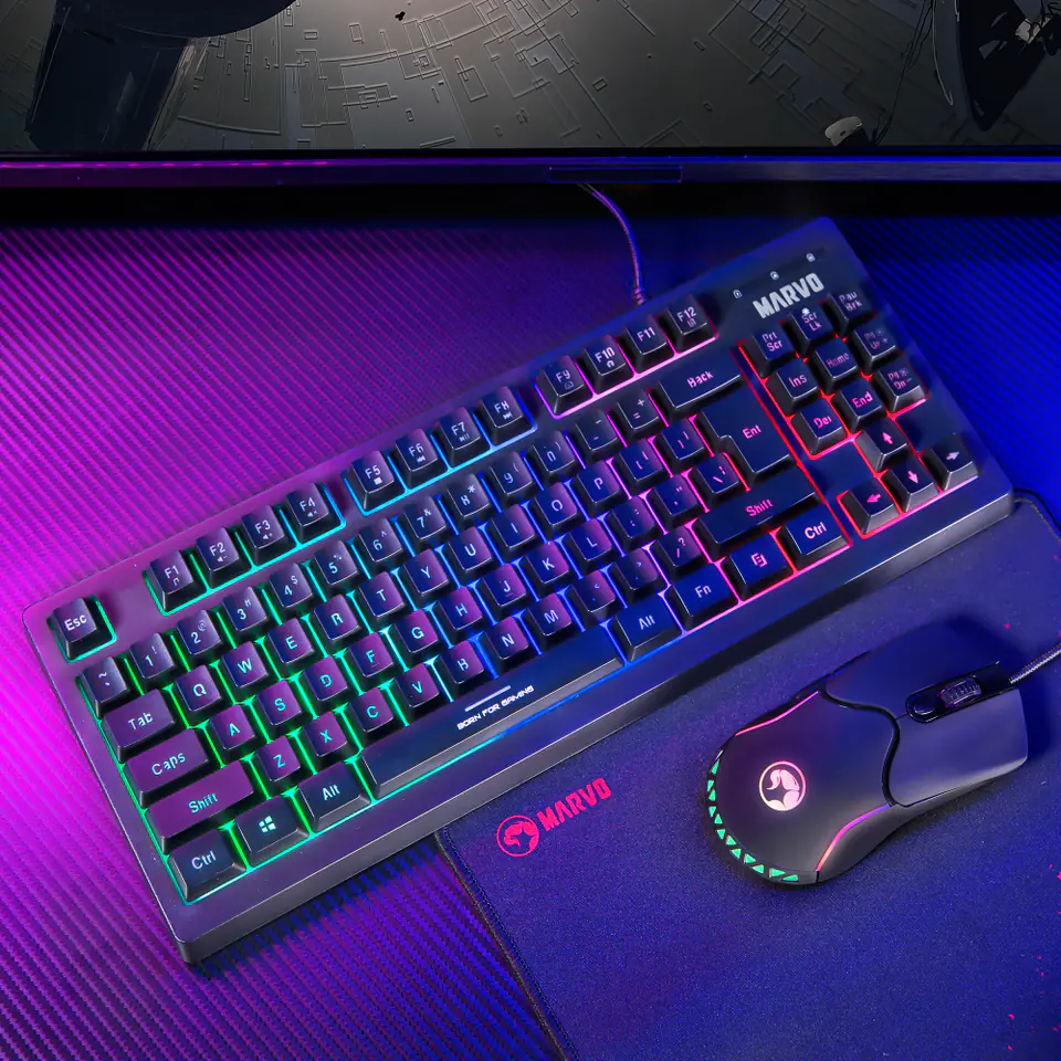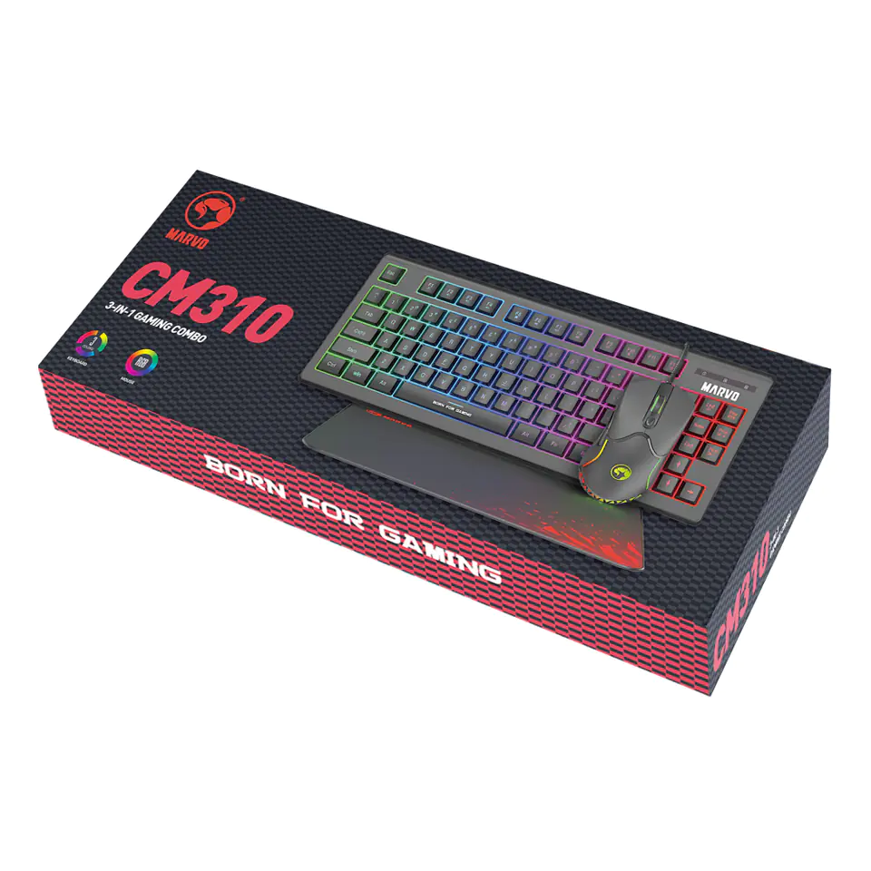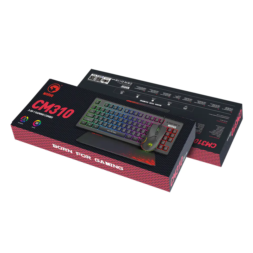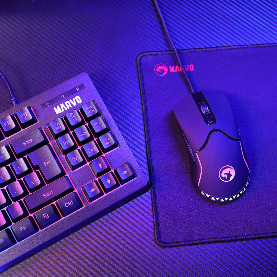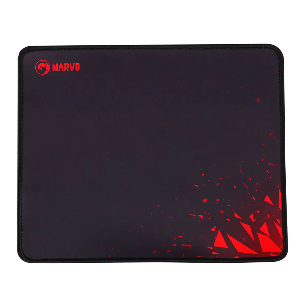 W zestawie gamingowym CM310 zadebiutowała podkładka z nową szatą graficzną i nowym logo Marvo. W odróżnieniu od dotychczas stosowanych w zestawach Marvo podkładka posiada symetryczny kształt o wymiarach 28x23 cm. Utrzymana jest w czarnej kolorystyce z niewielkim dodatkiem czerwieni.