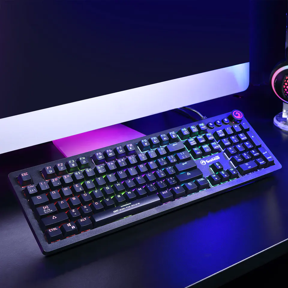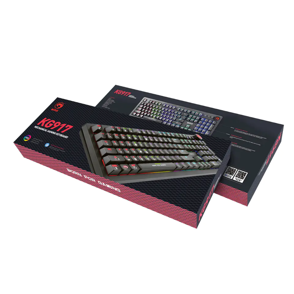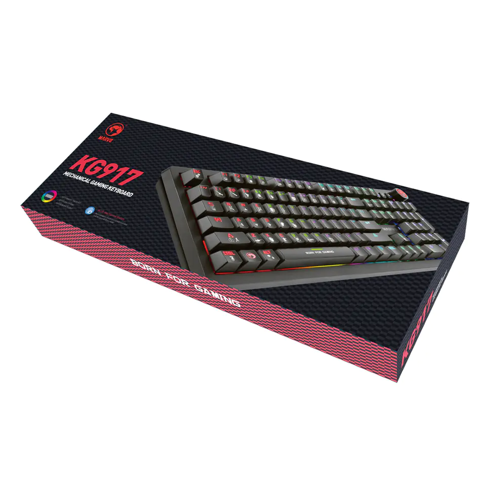 KG917 to nowoczesna pełnowymiarowa klawiatura mechaniczna, wyposażona w szereg udogodnień.Bazę dla udanej i długiej rozgrywki stanowią przełączniki mechaniczne Blue o żywotności 50 milionów kliknięć.
