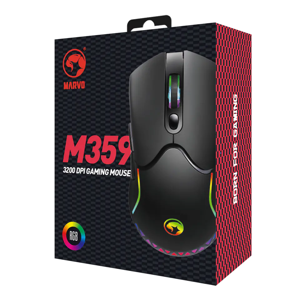 M359 to mysz gamingowa o nisko profilowanym uchwycie. Wymiary gryzonia 127 x 66 mm, obustronne wcięcie niewielka waga, około 90g, pozwalają na wygodne uchwycenie myszy i precyzyjne prowadzenie w trakcie rozgrywki nie zależnie od ulubionego chwytu gracza.Mysz została wyposażona w sensor optyczny RTT3168 o maksymalnej rozdzielczości 3200 DPI. Zarówno sensor jak i 7 przycisków posiada możliwość konfiguracji dzięki dołączonemu do myszy dedykowanemu oprogramowaniu.Kolejnym dużym atutem Myszy Marvo M359 jest jej charakterystyczne wyglądające podświetleniem RGB ukryte w dolnej krawędzi myszy. Co ważne podświetlenie to umożliwia regulację kolorów w palecie aż 16 milionów barw.Specyfikacja: