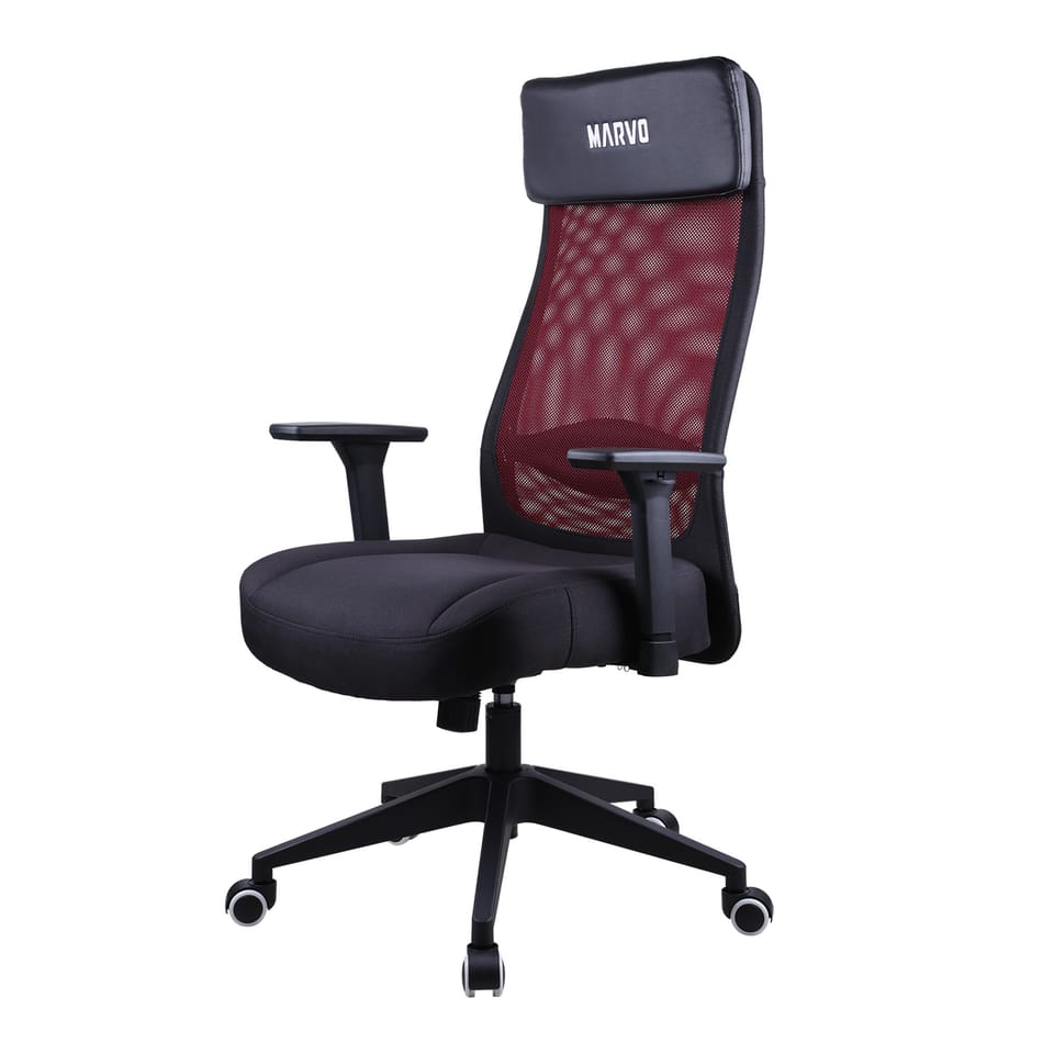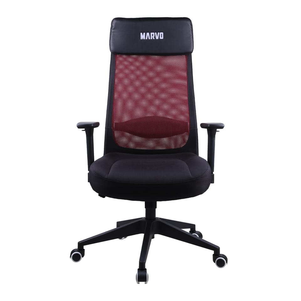 Marvo MAXIMUS – maksymalny komfort na długie godziny pracyStabilne i zdrowe podparcie plecówOparcie z przewiewnej siatkiZintegrowane podparcie lędźwiowe3D podłokietniki – dopasowanie na miaręMiękkie siedzisko z tkaninyTrwałe kółka o średnicy 50 mmSpecyfikacja techniczna: