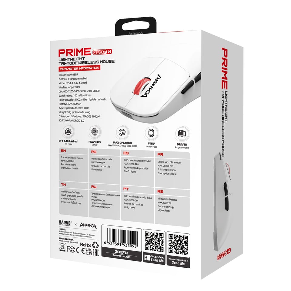 Ultralekka i ergonomicznaZ wagą zaledwie 53 g, MONKA Prime to piórko w świecie myszy gamingowych. Kompaktowa forma i wygodny chwyt claw i palm grip zapewniają komfort nawet podczas wielogodzinnych sesji.