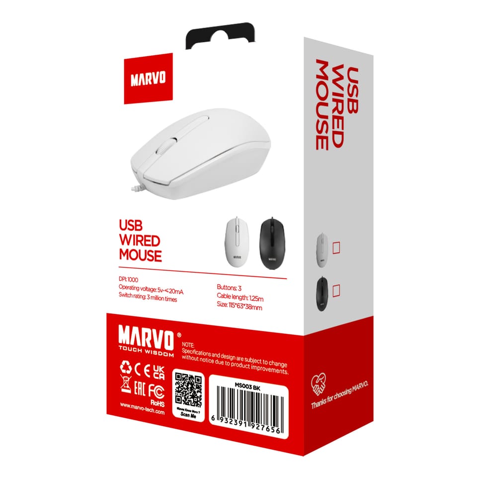 Marvo MS003 Black to doskonała mysz biurowa, która łączy w sobie prostotę, trwałość i funkcjonalność. Jej symetryczny kształt, wysoka precyzja i trwałe przełączniki czynią ją idealnym narzędziem do codziennych zadań w biurze lub w domu. Bez względu na to, czy jesteś osobą leworęczną, czy praworęczną, Marvo MS003 zapewni wygodę i efektywność pracy przez wiele lat.