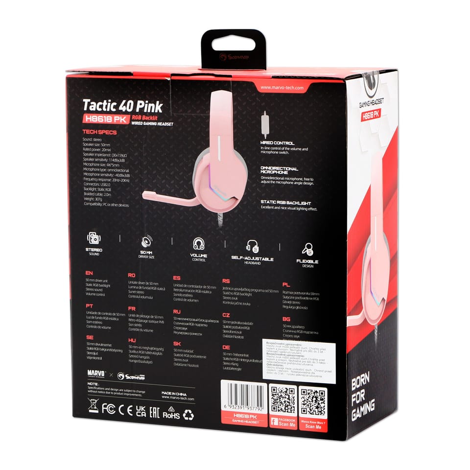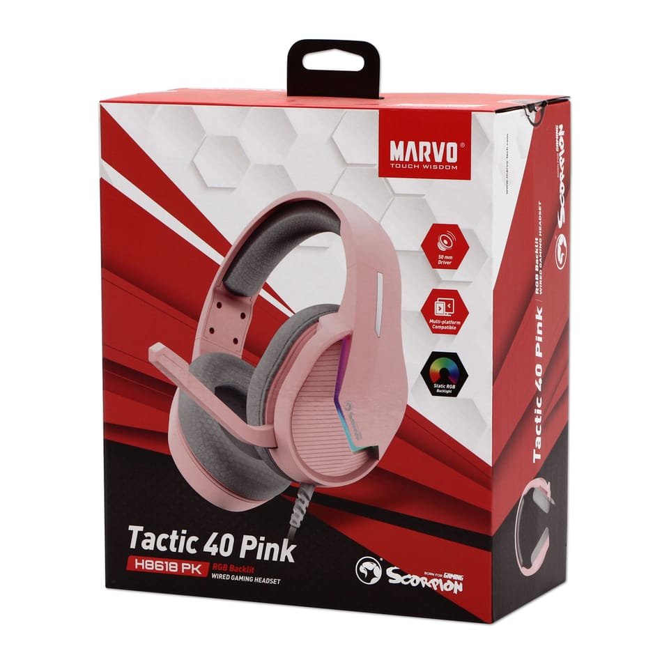 Słuchawki gamingowe Marvo TACTIC 40 (H8618) – immersja bez kompromisówKomfort na długie godzinyKomunikacja bez zakłóceńStyl i funkcjonalnośćSpecyfikacja techniczna: